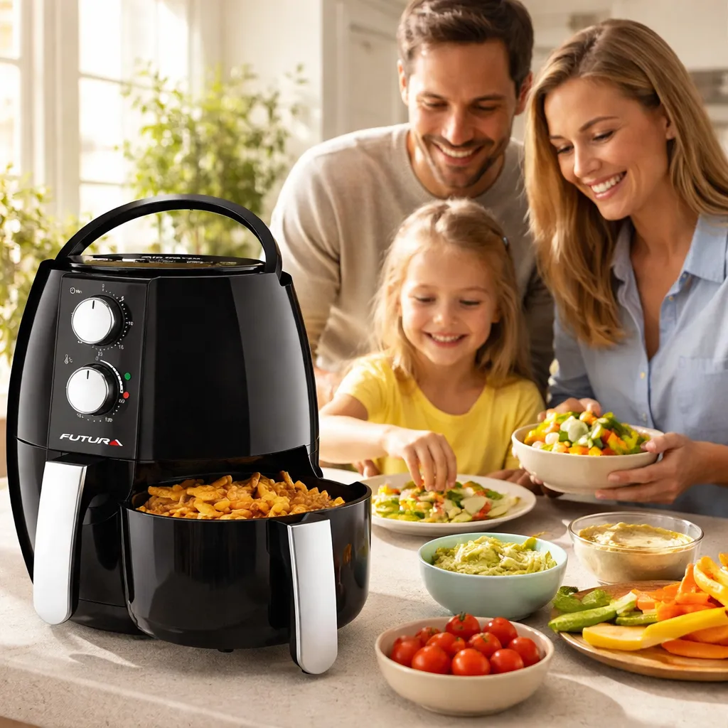 Ideal para quienes desean llevar un estilo de vida más saludable sin sacrificar el sabor, la Freidora Sin Aceite Futura es perfecta para preparar desde papas fritas crujientes hasta deliciosos postres. Descubre una nueva forma de cocinar y transforma tus comidas en experiencias culinarias excepcionales.