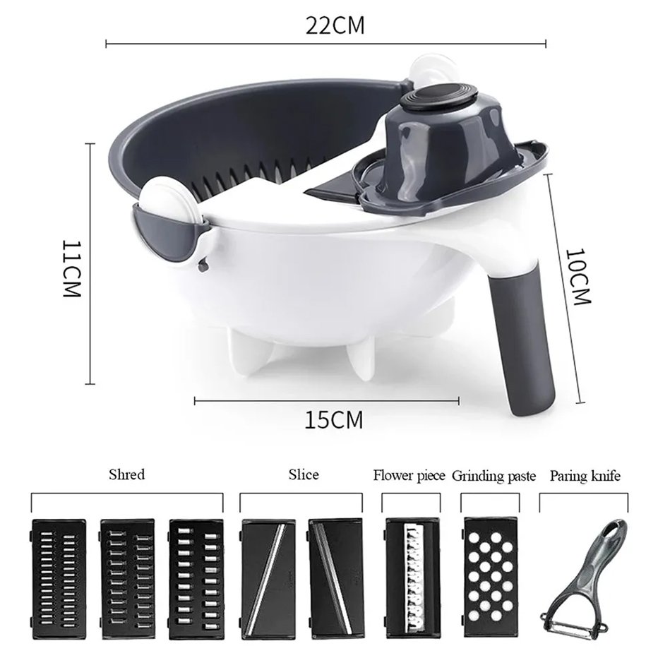 Rallador multifunción para diversos vegetales. Puede ser utilizado para cortar o rallar vegetales asi como para lavar la verdura.